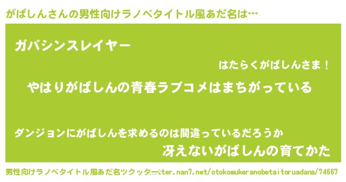 | ヒーロー風カッコイイあだ名 | 『ウルトラがばしんマン』『魔戒騎士ガバ』 |