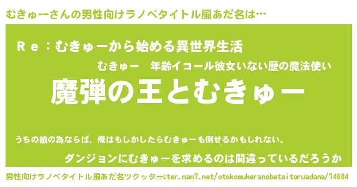 | 意味不明あだ名 | 『住所不定無職むきゅー(65歳)』 |