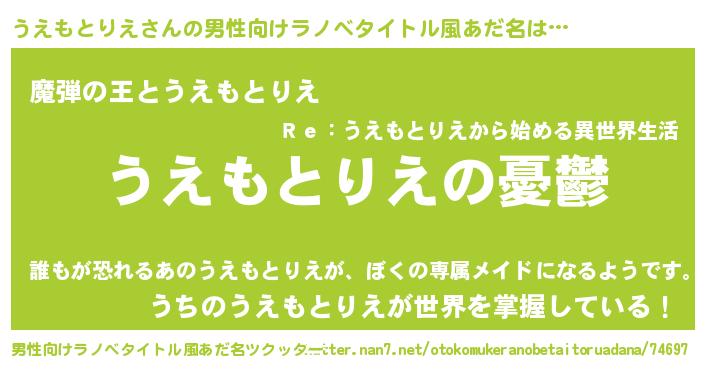 | 女子向けラノベタイトル風あだ名 | 『うえもとりえ姫と円卓の騎士』 |