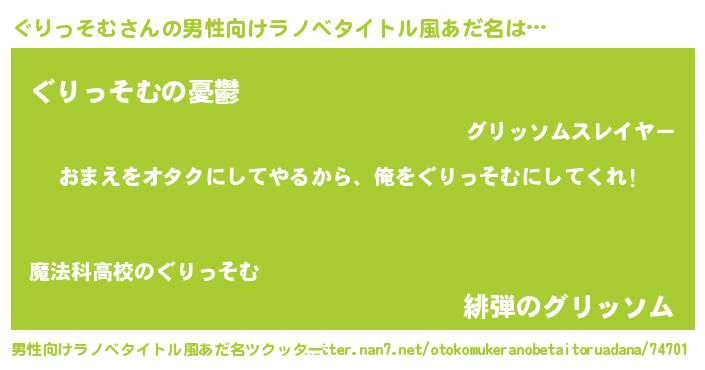 | ヒーロー風カッコイイあだ名 | 『友情の使者ぐりっそむ』『仮面グリダー』 |