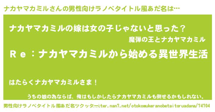 | 女子向けラノベタイトル風あだ名 | 『ナカヤマカミルストレイドッグス』 |