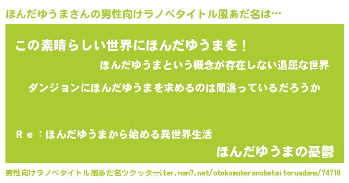 | 胡散臭い通販商品みたいなあだ名 | 『信頼と実績のネックレス…その名も「ほんだゆうま」』 |