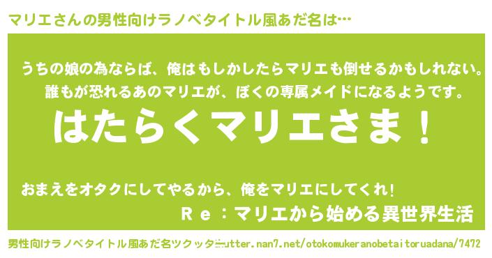 | ヘコむあだ名 | 『牛乳』『マリエ(苦笑)』『マリ太郎』 |