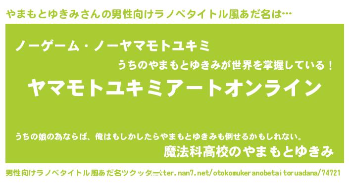 | 女子向けラノベタイトル風あだ名 | 『誰かこのやまもとゆきみを説明してください! ~契約から始まるウェディング~』 |
