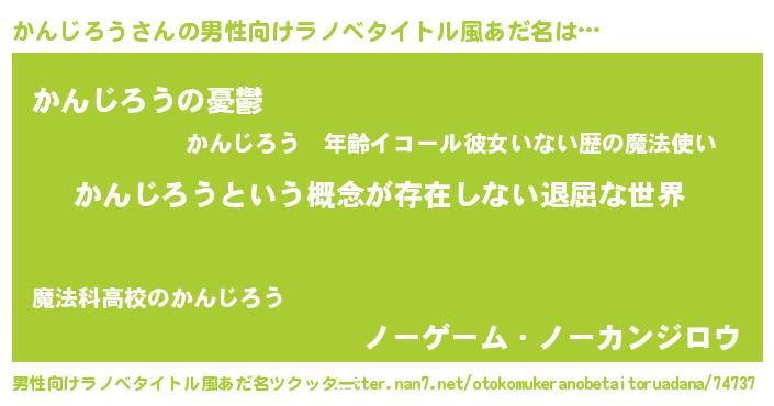 | 女子向けラノベタイトル風あだ名 | 『異世界で失敗しない100のかんじろう』 |
