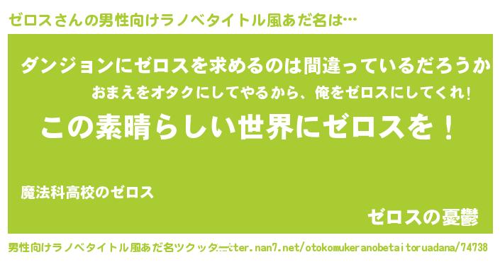 | 意味不明あだ名 | 『住所不定無職ゼロス(41歳)』『自称ゼロス』 |