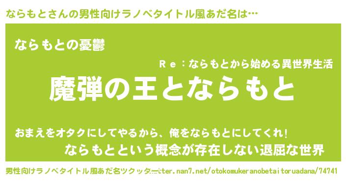 | 意味不明あだ名 | 『住所不定無職ならもと(71歳)』 |
