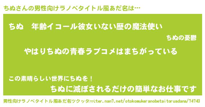 | 胡散臭い通販商品みたいなあだ名 | 『世界が平和になる高級そうな壺…その名も「ちぬ」』 |