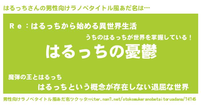 | 女子向けラノベタイトル風あだ名 | 『(仮)はるっちのやんごとなき事情』 |