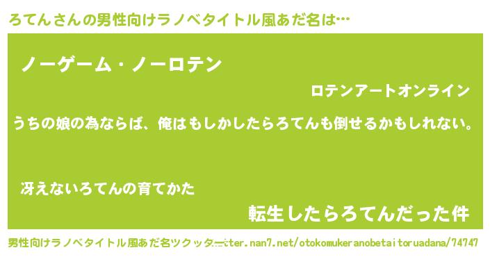 | 女子向けラノベタイトル風あだ名 | 『ろてんの婚約者』『ろてん恋絵巻』 |