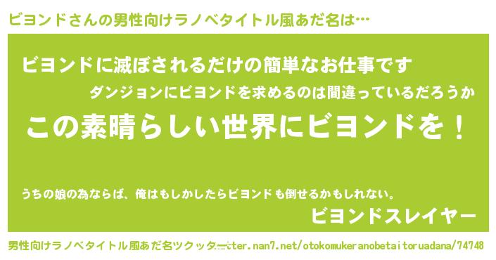 | 胡散臭い通販商品みたいなあだ名 | 『世界中を虜にした100年もののヴィンテージワイン…その名も「ビヨンド」』 |