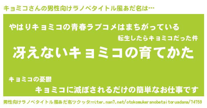 | 意味不明あだ名 | 『キョミコフォーエバー』『自称キョミコ』 |