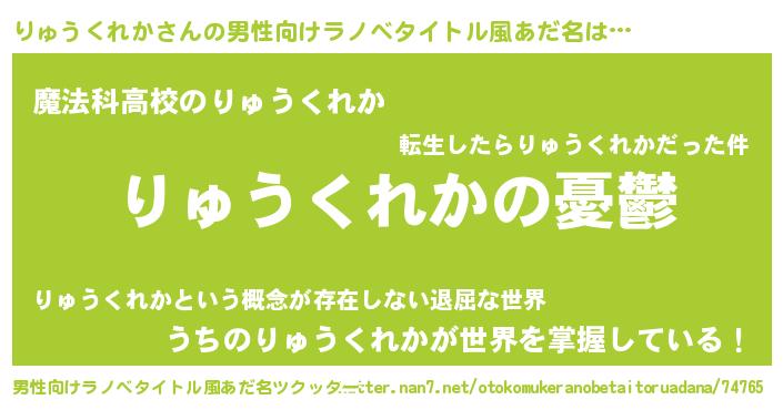 | ヘコむあだ名 | 『りゅにー』『りゅうくれか(苦笑)』 |