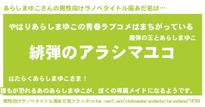 | 女子向けラノベタイトル風あだ名 | 『シンデレラあらしまゆこ家の靴箱館』 |