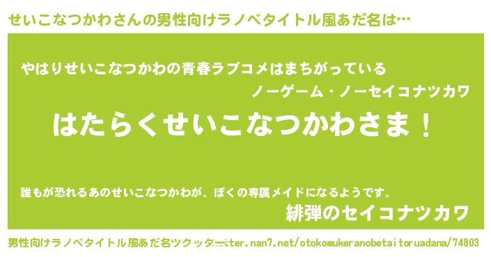 | ファンタジー風あだ名 | 『エターナルセイコナツカワー』 |