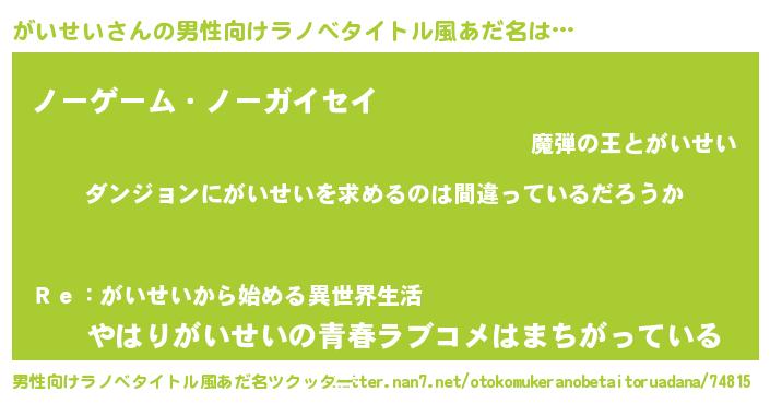 | 女子向けラノベタイトル風あだ名 | 『がいせいは平凡を望む』 |