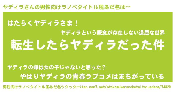 | 胡散臭い通販商品みたいなあだ名 | 『世界が平和になる高級そうな絵画…その名も「ヤディラ」』 |