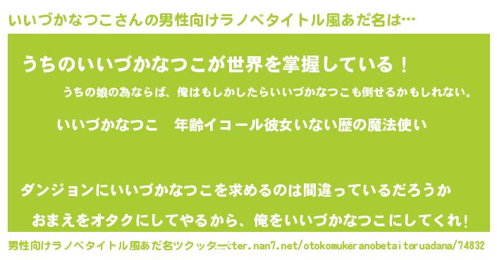 | 女子向けラノベタイトル風あだ名 | 『いいづかなつこの玉の輿計画!』 |