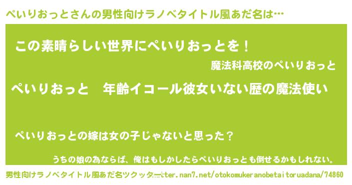 | 胡散臭い通販商品みたいなあだ名 | 『あなたにだけ特別に提供する100年もののヴィンテージワイン…その名も「ぺいりおっと」』 |