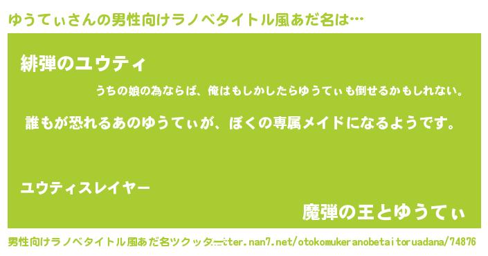 | 意味不明あだ名 | 『永久保存ゆうてぃ』『自称ゆうてぃ』 |