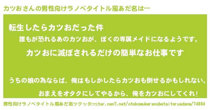 | ヘコむあだ名 | 『カツお(苦笑)』『なまこ酢』 |