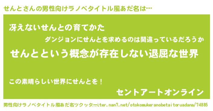 | 胡散臭い通販商品みたいなあだ名 | 『絶対に幸福をもたらす健康食品…その名も「せんと」』 |