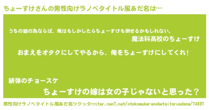 | 欧米人風あだ名 | 『ダニエルちょーすけ』 |