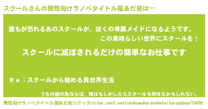 | 胡散臭い通販商品みたいなあだ名 | 『前代未聞の健康食品…その名も「スクール」』 |