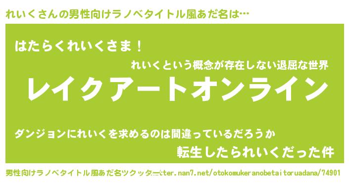 | 胡散臭い通販商品みたいなあだ名 | 『億万長者になれるブレスレット…その名も「れいく」』 |