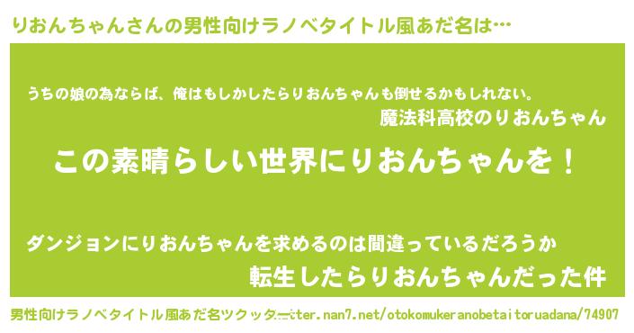 | 意味不明あだ名 | 『住所不定無職りおんちゃん(10歳)』 |