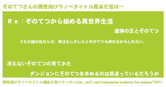 | ファンタジー風あだ名 | 『エターナルゾノテツー』『ゼゾノトゥ』 |
