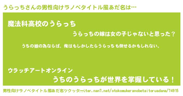 | ヒーロー風カッコイイあだ名 | 『ウルトラうらっちマン』『炎刃騎士ウラ』 |