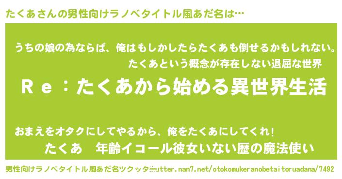 | ファンタジー風あだ名 | 『ゼタクトゥ』『エターナルタクアー』 |