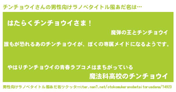 | ヒーロー風カッコイイあだ名 | 『ネオチンチョウイ』『仮面チンダー』 |