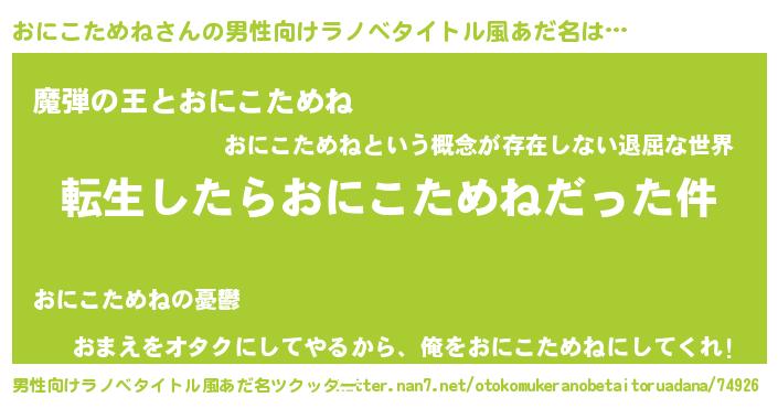 | ヘコむあだ名 | 『おにこためね(小並感)』『おにふぇ~』 |