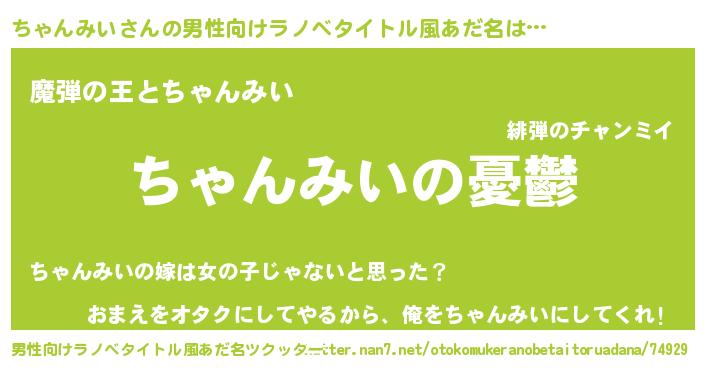 | 胡散臭い通販商品みたいなあだ名 | 『必ず成功するブレスレット…その名も「ちゃんみい」』 |