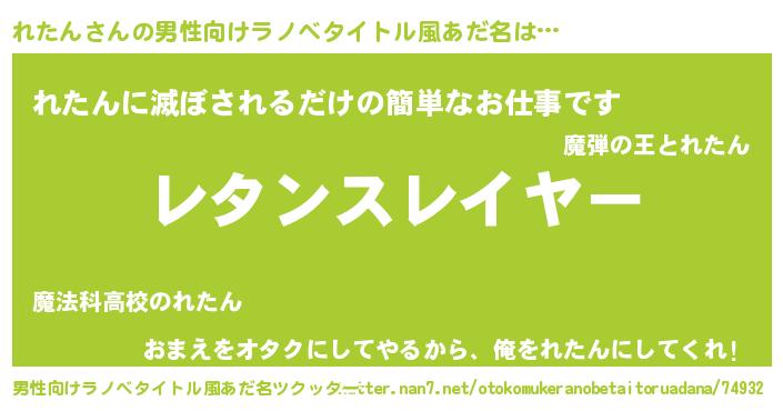| ヒーロー風カッコイイあだ名 | 『正義の使者れたん』『仮面レタダー』 |