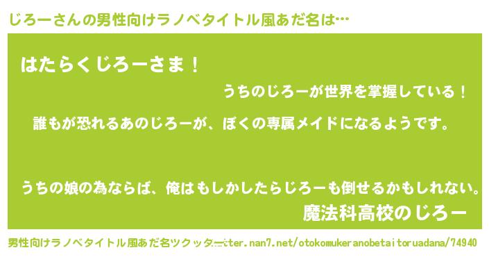 | 女子向けラノベタイトル風あだ名 | 『異世界でカフェじろーを開店しました。』 |