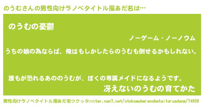 | 女子向けラノベタイトル風あだ名 | 『のうむ伯爵の花嫁』『のうむ恋絵巻』 |