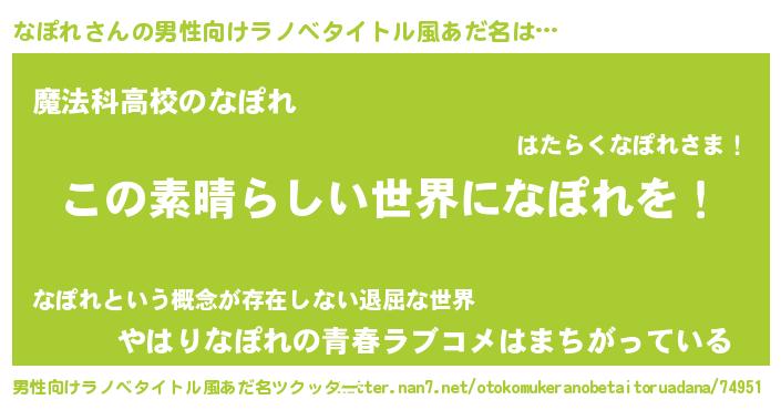 | 意味不明あだ名 | 『住所不定無職なぽれ(91歳)』『自称なぽれ』 |