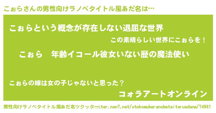 | 女子向けラノベタイトル風あだ名 | 『こぉらの玉の輿計画!』 |