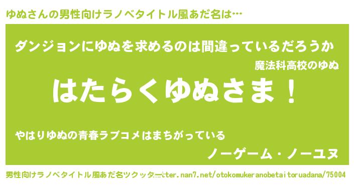 | ヒーロー風カッコイイあだ名 | 『魔戒騎士ユヌ』『愛の使者ゆぬ』 |