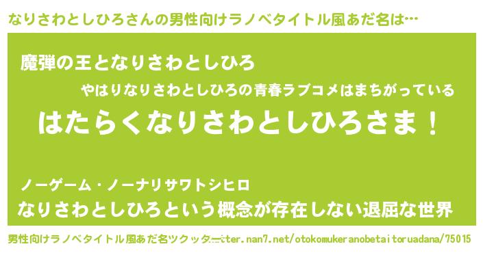 | 意味不明あだ名 | 『住所不定無職なりさわとしひろ(86歳)』 |