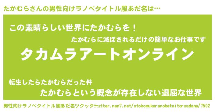 | 胡散臭い通販商品みたいなあだ名 | 『モテモテ間違いなし水晶球…その名も「たかむら」』 |