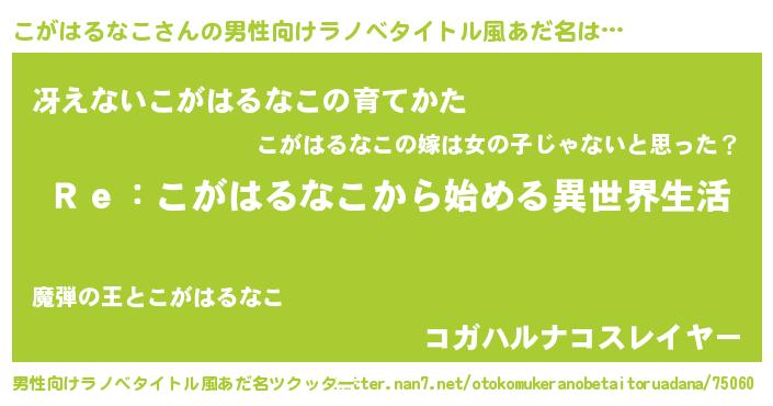 | 女子向けラノベタイトル風あだ名 | 『こがはるなこストレイドッグス』 |