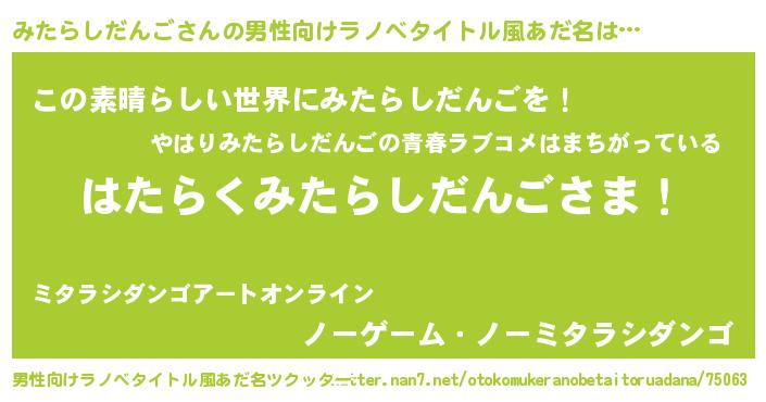 | 意味不明あだ名 | 『住所不定無職みたらしだんご(8歳)』 |