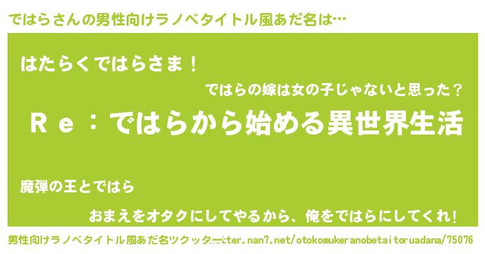 | 胡散臭い通販商品みたいなあだ名 | 『芸能人もオススメする高麗人参…その名も「ではら」』 |