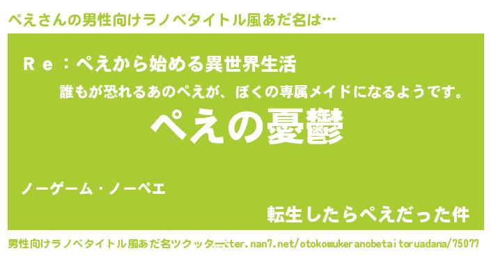 | 意味不明あだ名 | 『ペロリンぺえ』『自称ぺえ』 |