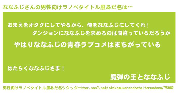 | 女子向けラノベタイトル風あだ名 | 『ななふじ伯爵の花嫁』『ななふじ恋絵巻』 |