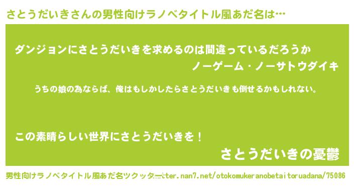 | ファンタジー風あだ名 | 『エターナルサトウダイキー』 |